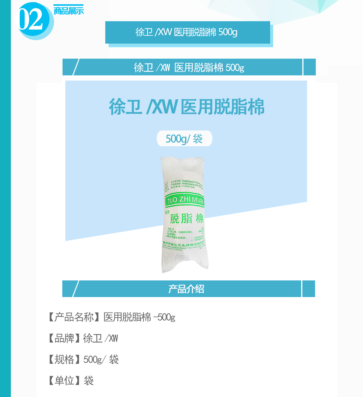 | 产品名称: | 医用脱脂棉-500g | 商品编号: | 056-MTZ500 |