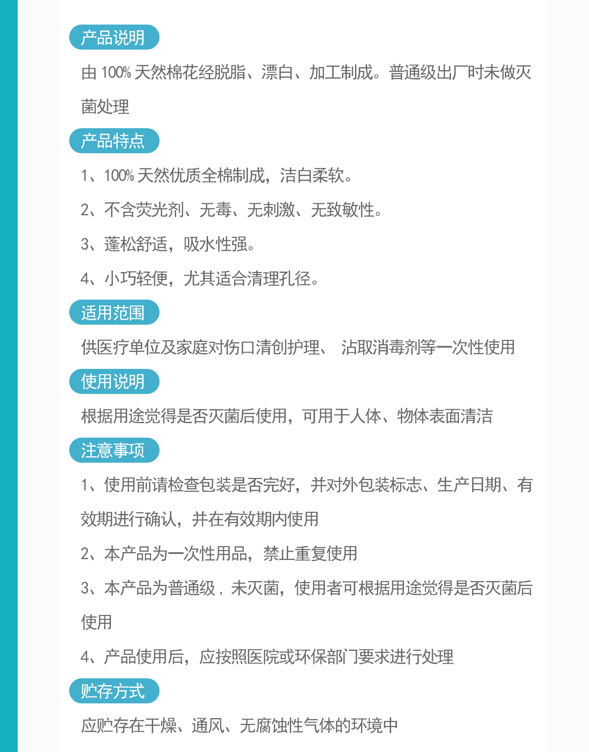 供医疗单位及家庭对伤口清创护理、 沾取消毒剂等一次性使用