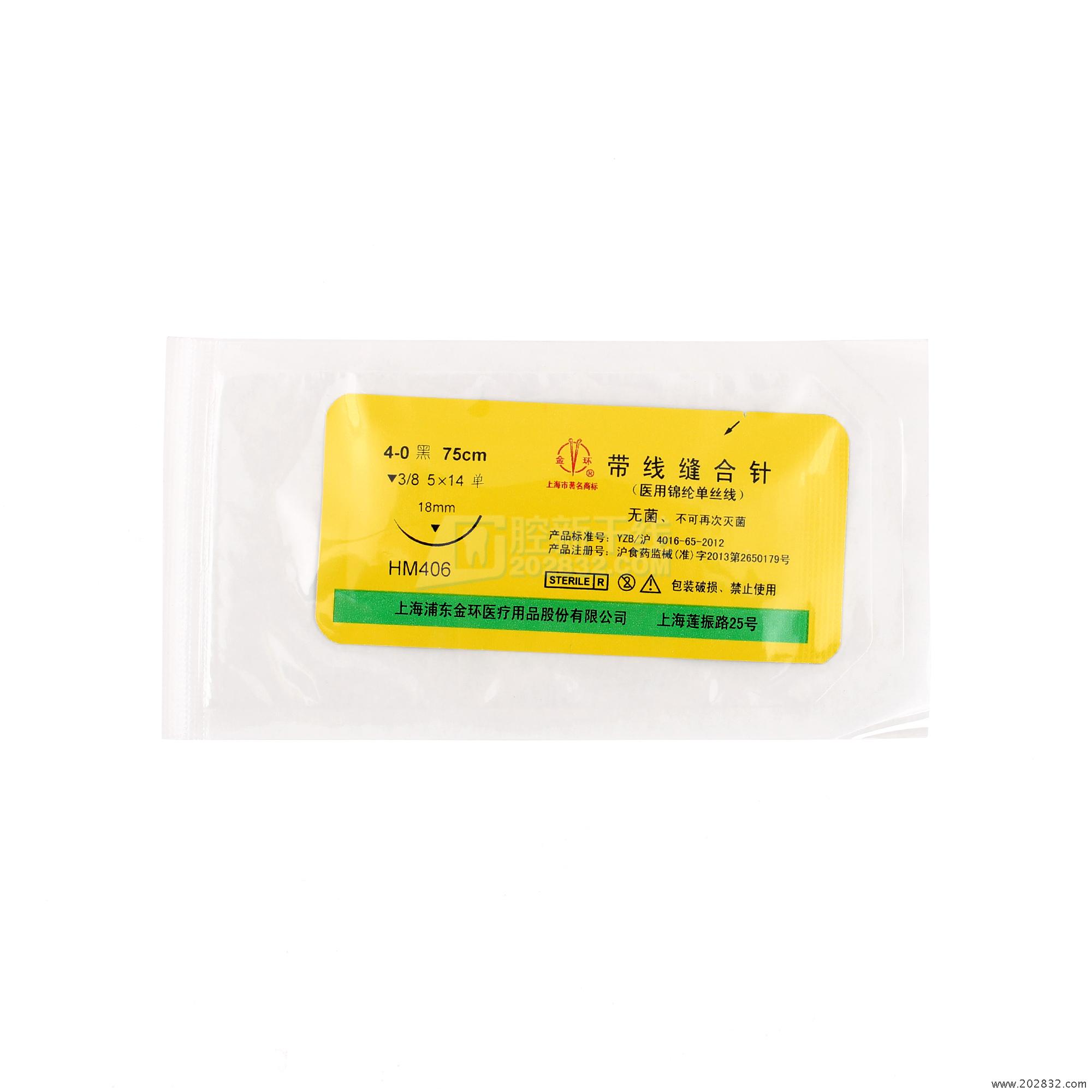 | 生产企业名称: | 上海浦东金环医疗用品股份有限公司 | 产品标准: | YZB/沪 4016-65-2012《非吸收性医用缝线》 |