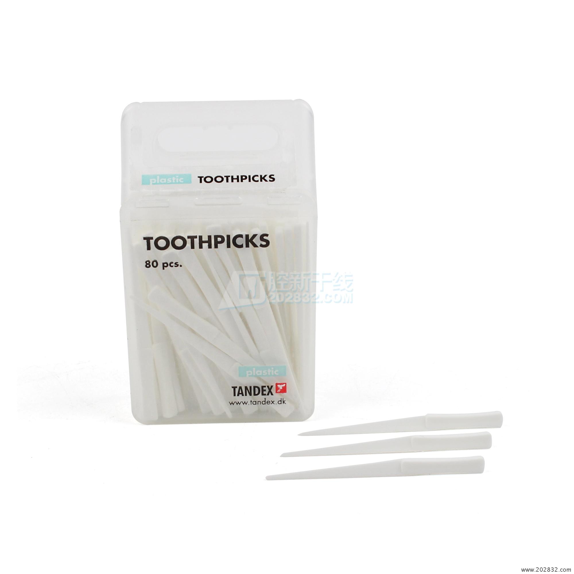 TANDEX牙签是从桦木或塑料制成,并具有一个适合的齿之间的空间中的三角形的形状