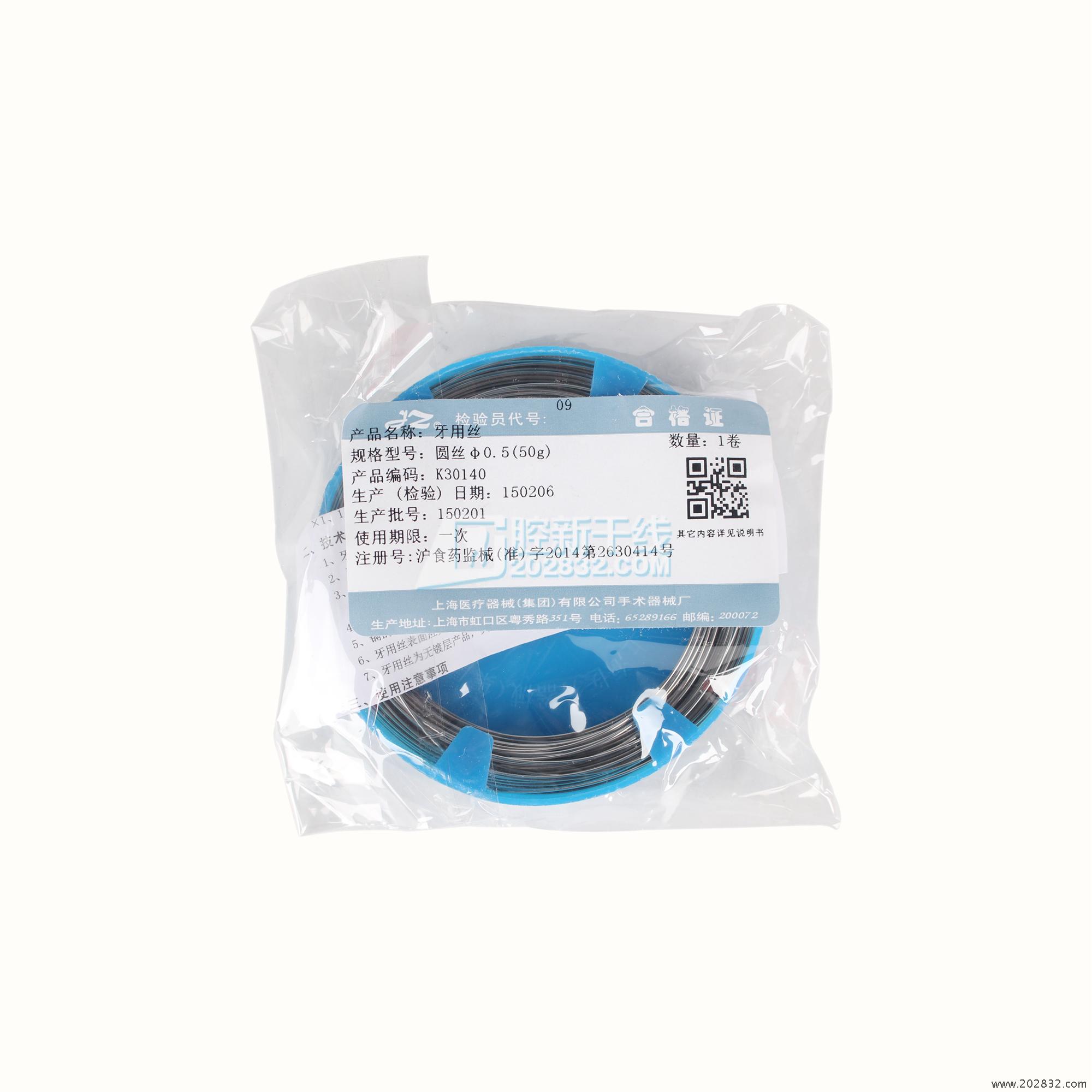 | 生产企业名称: | 上海医疗器械(集团)有限公司手术器械厂 | 产品标准: | YZB/沪1423-63-2013《牙用丝》 |