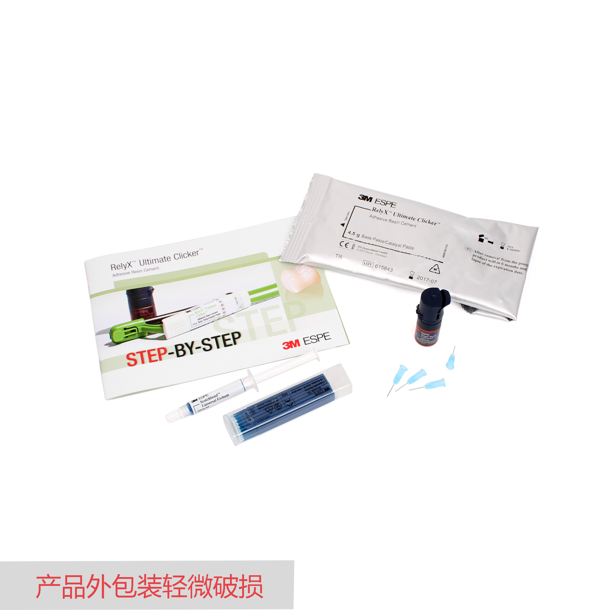 A1色,内含:基质/催化剂4.5g,万能粘结剂1.5mL,酸蚀剂3mL,注射器1个,注射头25个