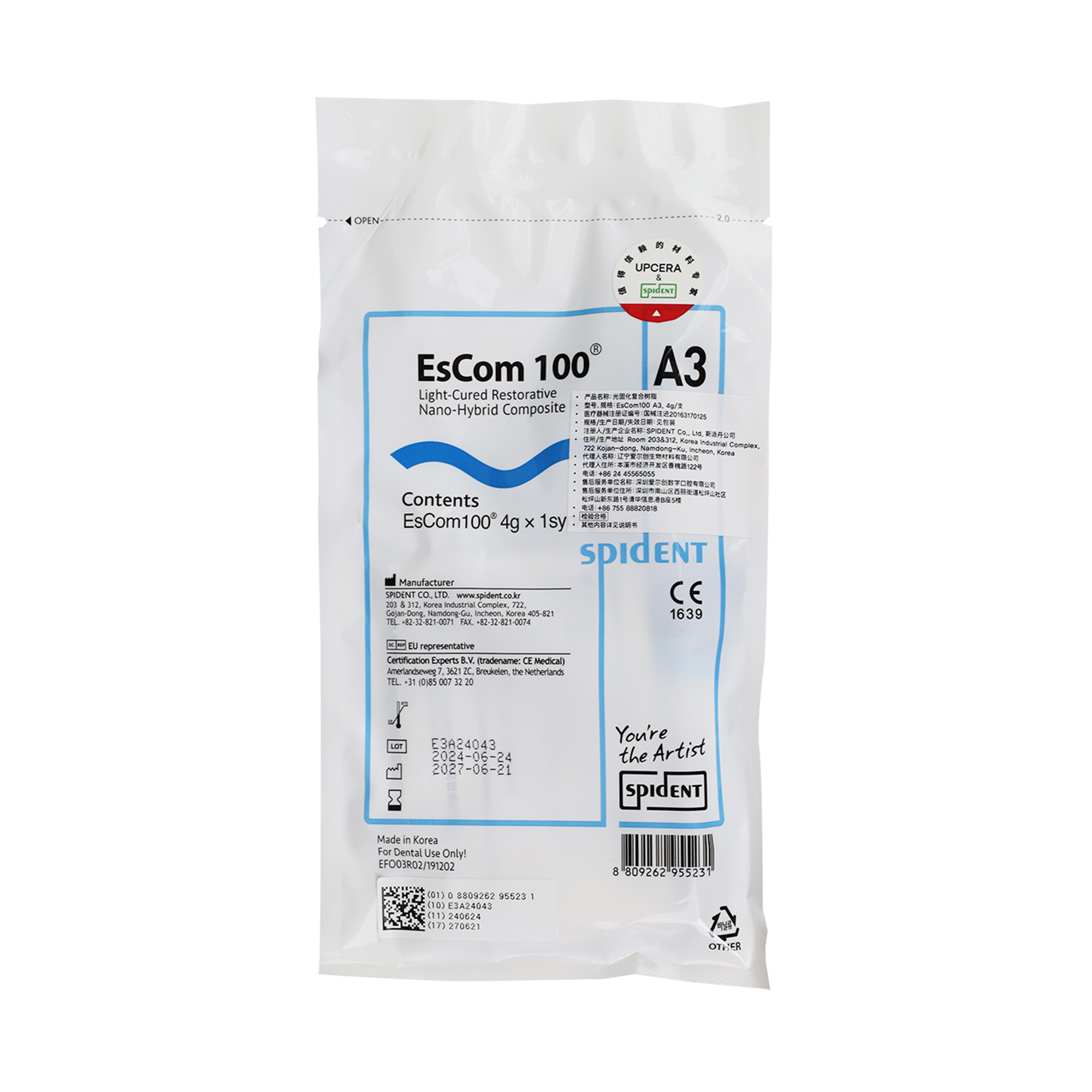 | 产品名称: | EsCom100 光固化复合树脂 A3,4g/支 | 商品编号: | 352-SZEC-A3 |