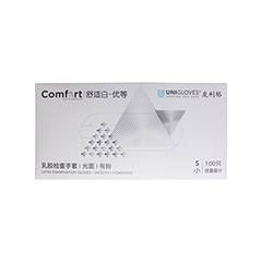 友利格/UNIGLOVES comfort有粉乳胶检查手套(舒适白-优等)有粉,光面,S,小号,100只/盒,U0700-S