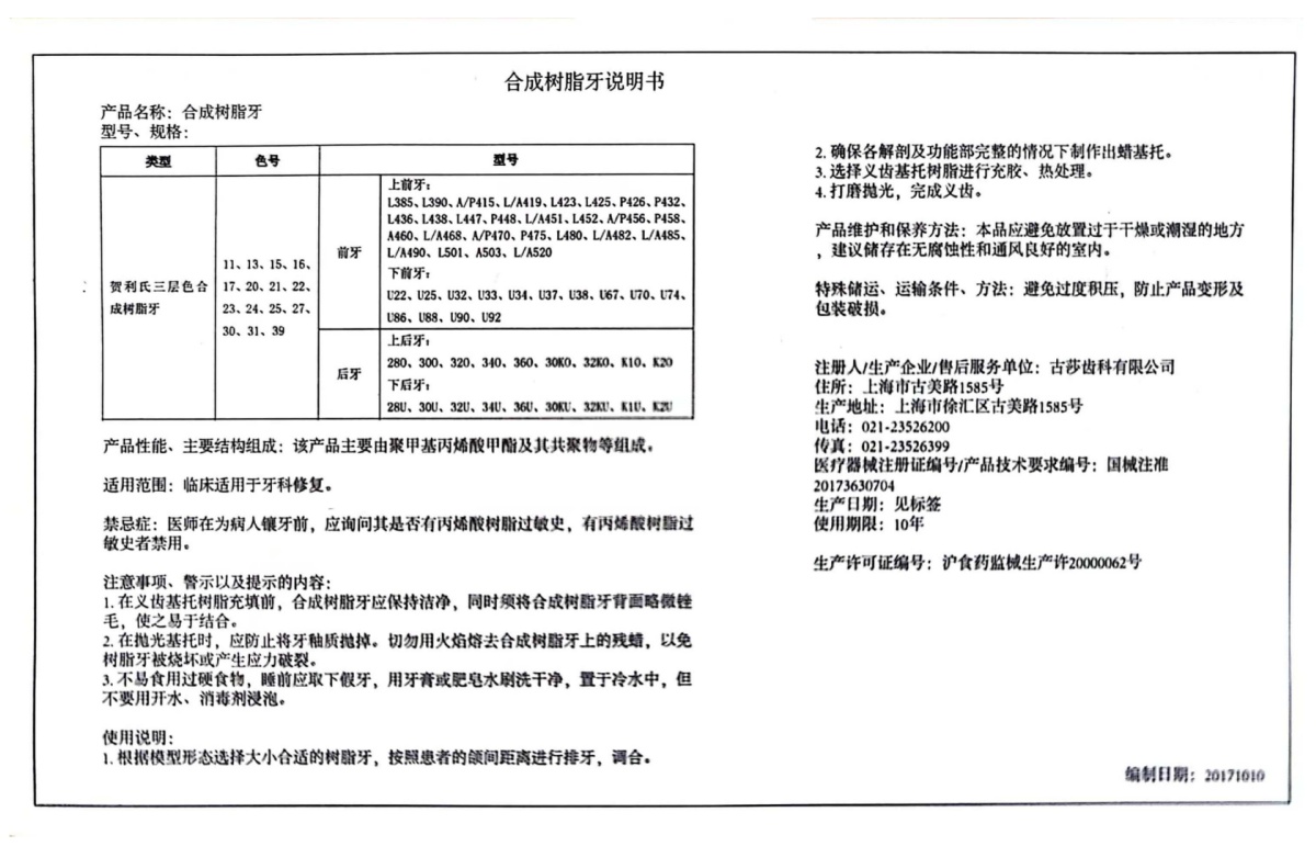 | 生产企业名称: | 古莎齿科有限公司 | 产品标准: | 国械注准20173170704 |