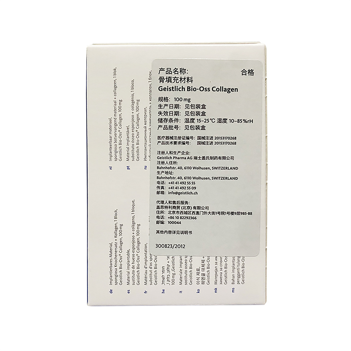| 生产企业名称: | 瑞士盖氏制药有限公司Geistlich Pharma AG | 产品标准: | 国械注进20153170268 |