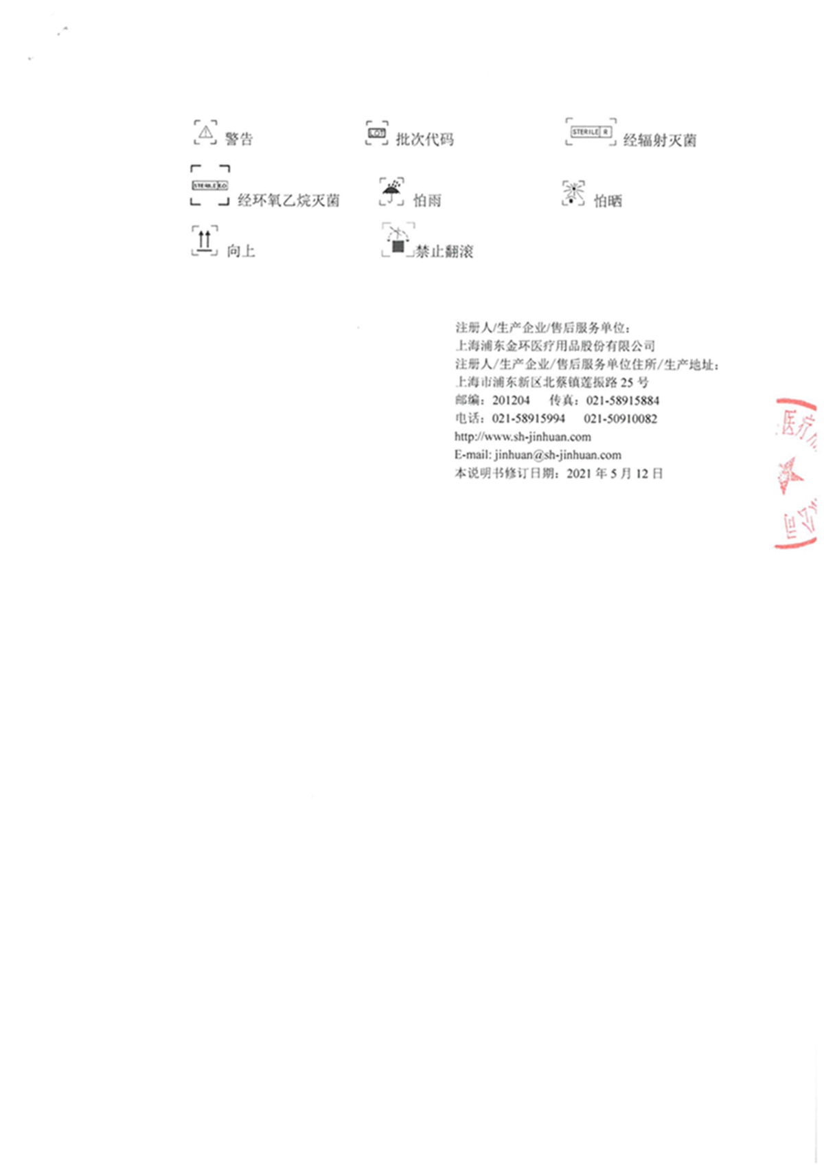 | 生产企业名称: | 上海浦东金环医疗用品股份有限公司 | 产品标准: | 沪械注准20212020341 |