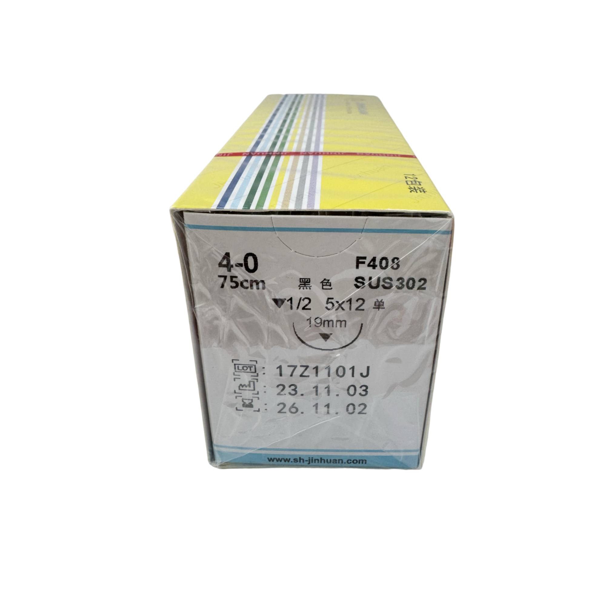 | 产品名称: | 上海金环 带线缝合针(医用丝线)F408 4-0 75cm ▼1/2 5×12 单 19mm 黑色,1根/包,12包/盒 | 商品编号: | JH100800Y-XY |