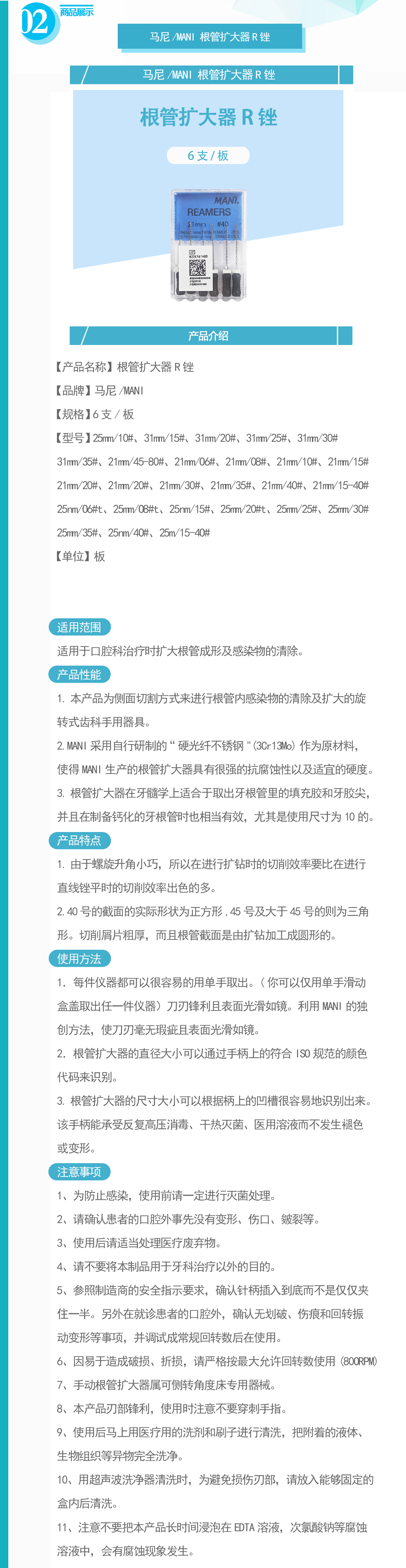 | 产品名称: | 马尼/MANI 根管扩大针 R锉 21mm 40# | 商品编号: | MAN00900V-ZZSME |