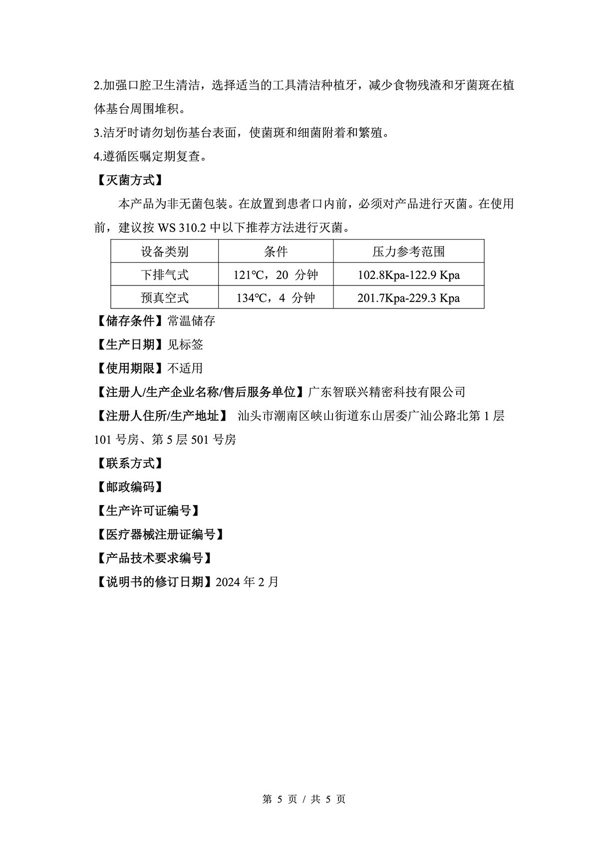 | 生产企业名称: | 广东智联兴精密科技有限公司 | 产品标准: | 国械注准20243170408 |