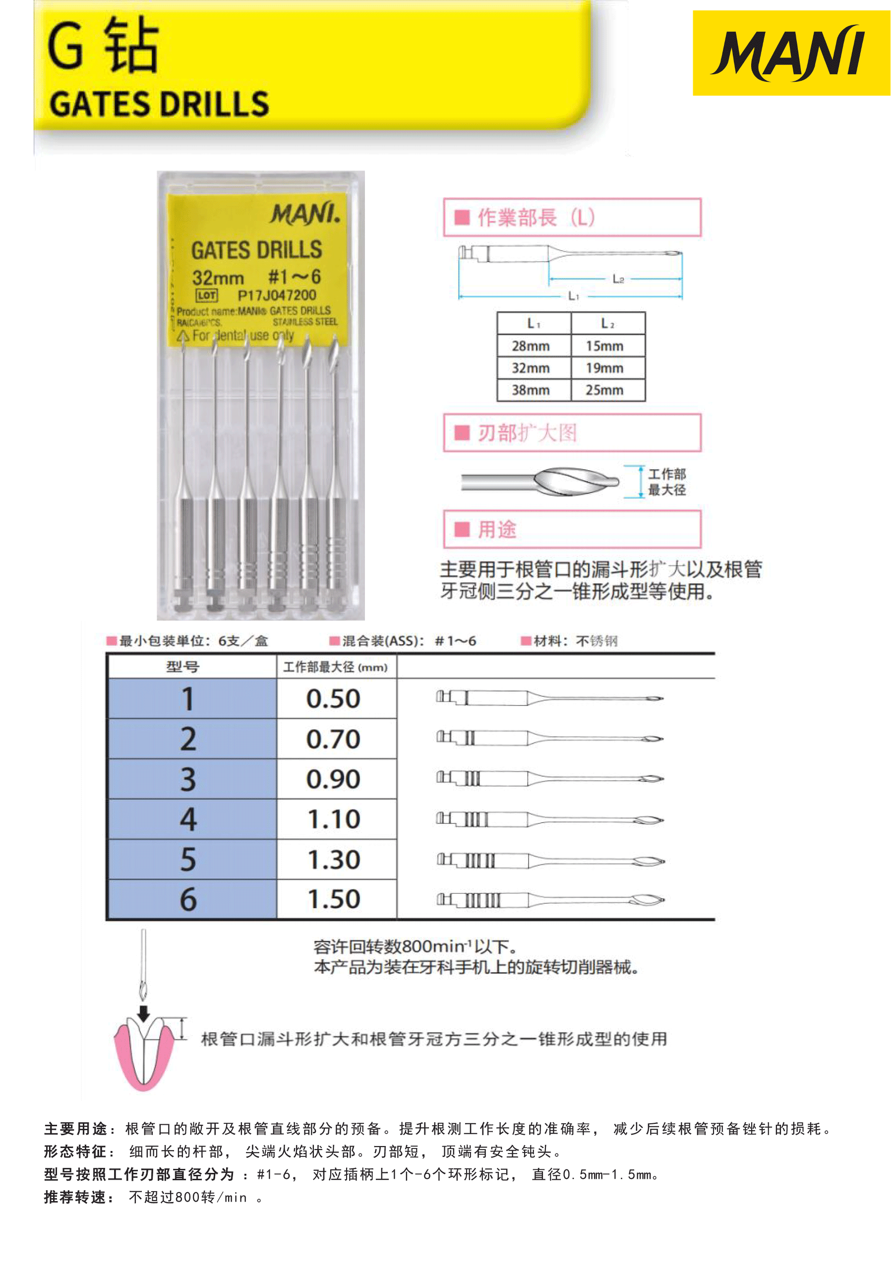| 产品名称: | 马尼/MANI 钢质机用根管器械 /(PB)机用短头扩管钻 G钻 1# 28MM 6支/盒 | 商品编号: | MAN00403Y-XY |