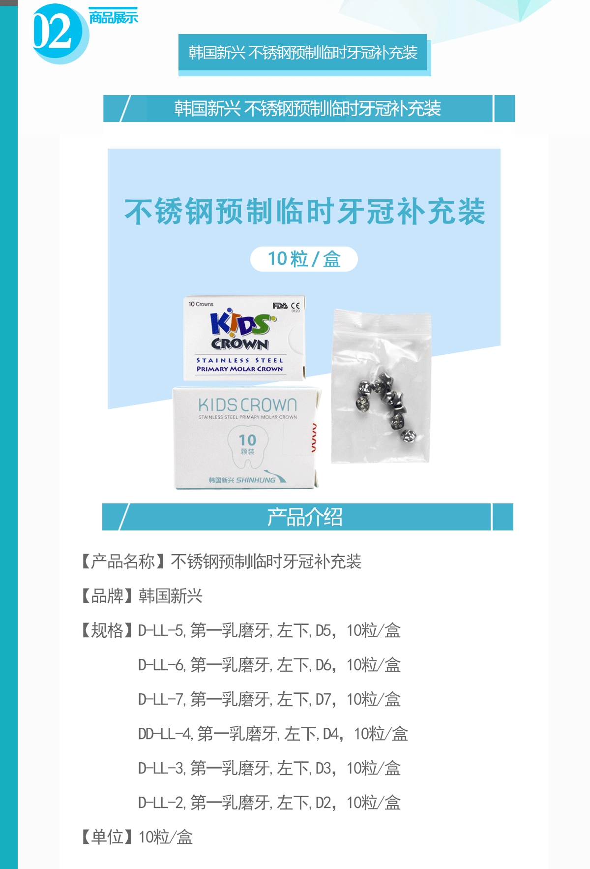 产品名称: | 韩国新兴 儿童牙冠 D-LL-3 | 商品编号: | SNG000011-YSK |
