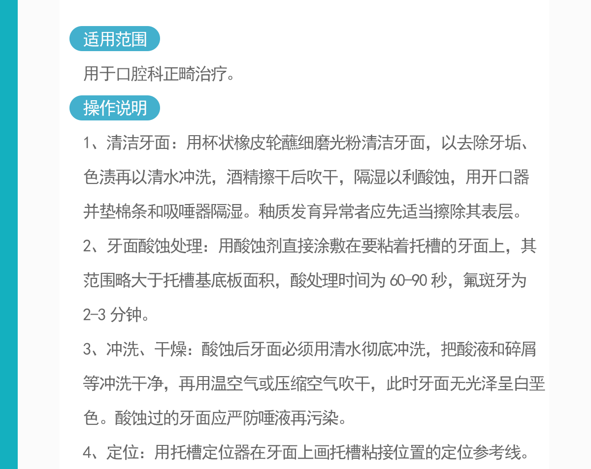 | 是否需要医疗机构资质: | 是 | 适用范围: | 本产品适用于口腔科正畸治疗。 |