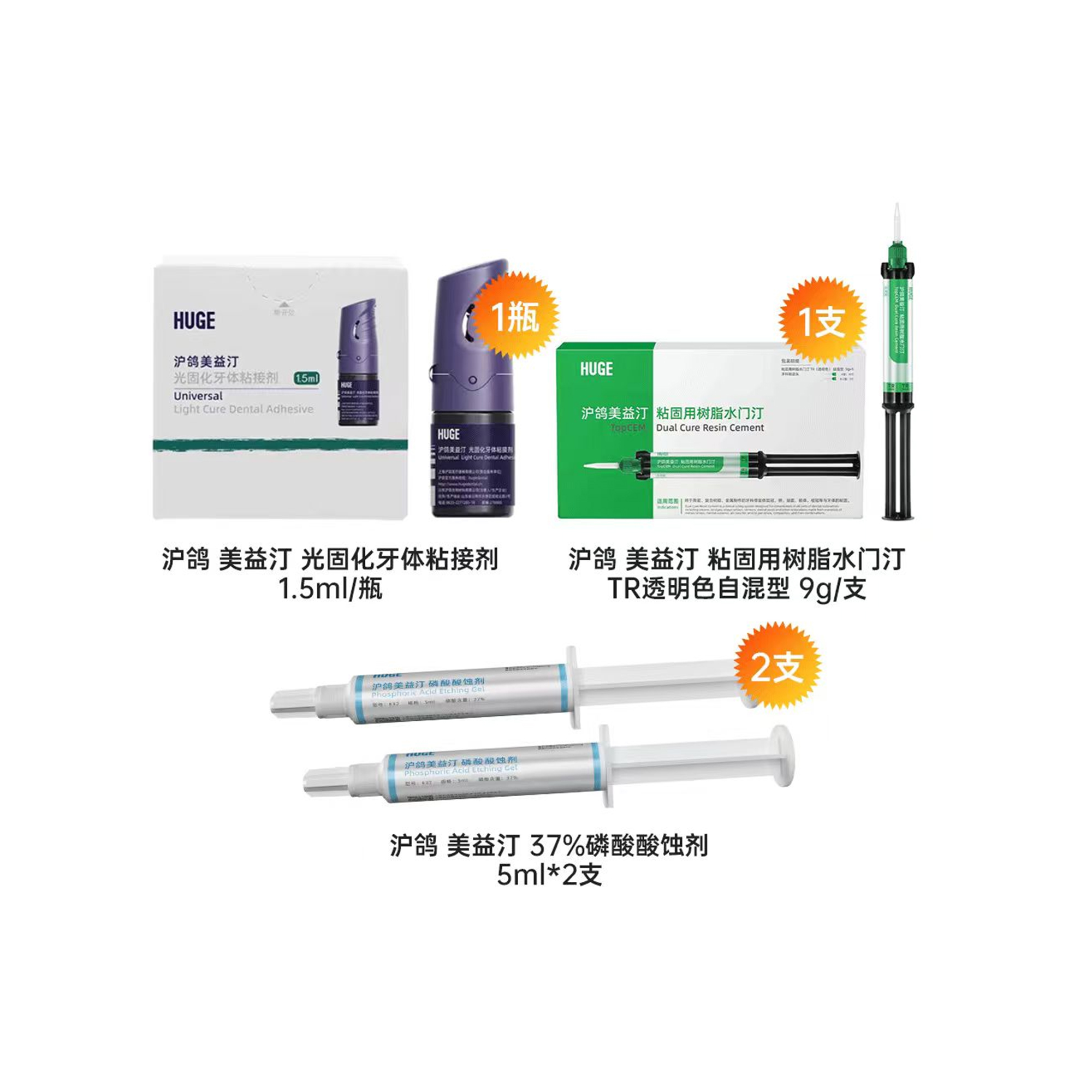 | 产品名称: | 美益汀 绿色粘接套装 套装独立包装(内含粘固用树脂水门汀TR透明色9g/支,8代粘接剂 1.5ml/瓶,37%磷酸酸蚀剂5ml,2支) | 商品编号: | 072-LSZJTZ |