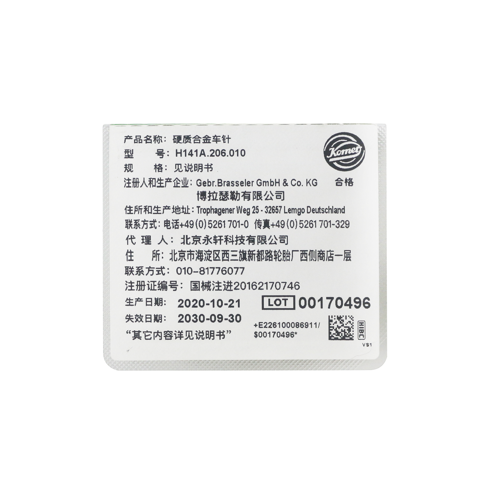 固美/Komet 钨钢球钻车针 硬质合金车针 H141A.206.010,5支/板