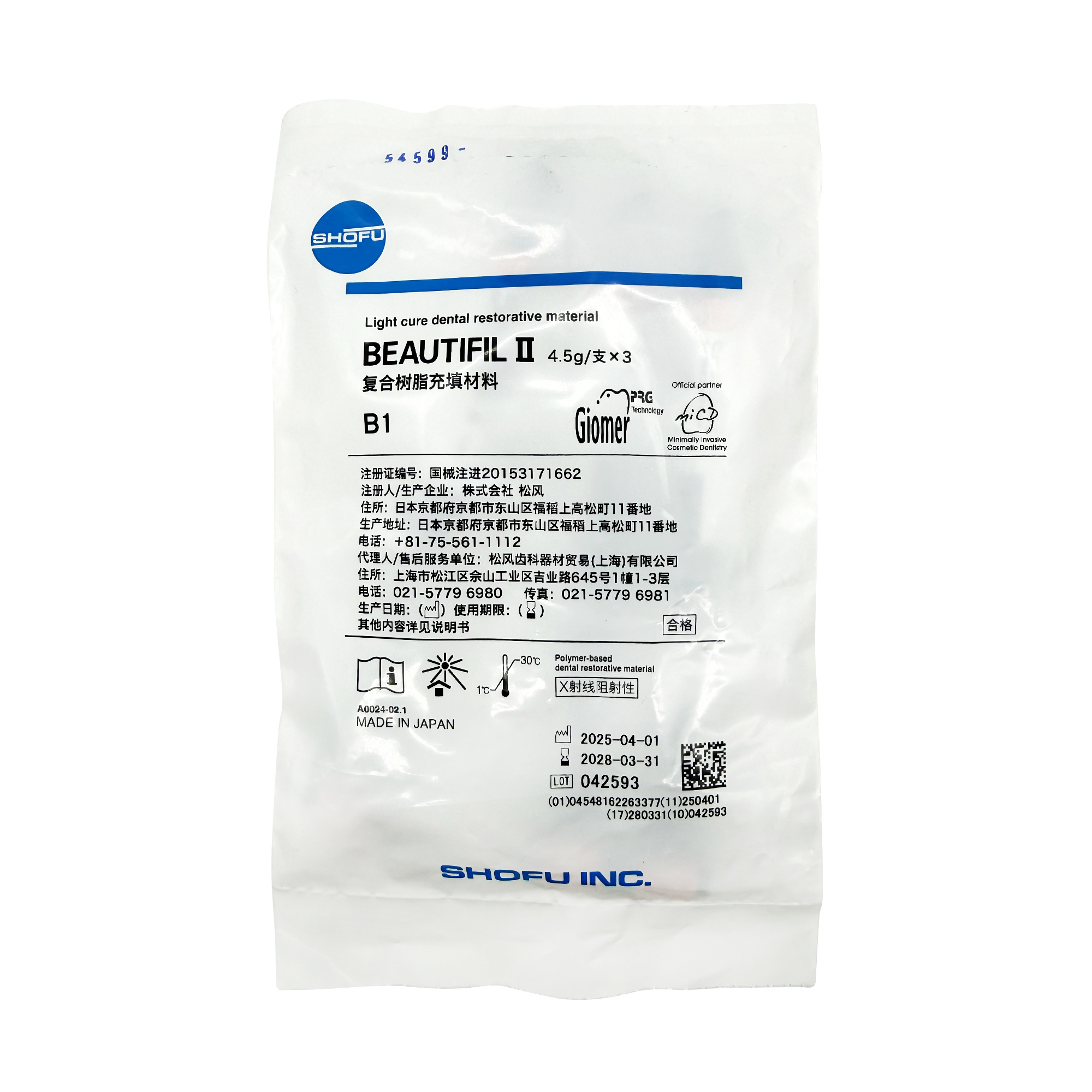 | 生产企业名称: | 松风齿科器材贸易(上海)有限公司 | 产品标准: | 国械注进20153171662 |