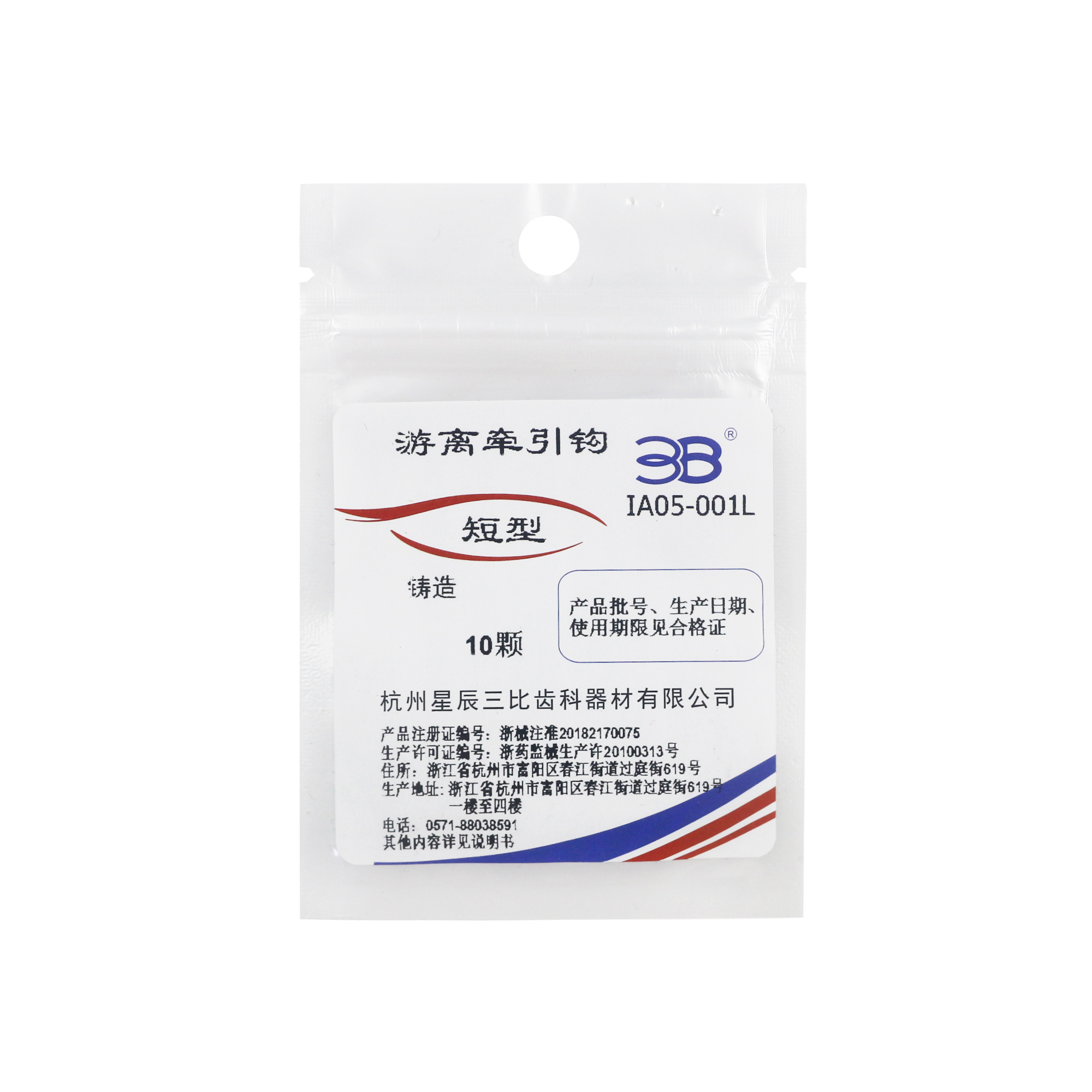 3B/三比正畸 游离牵引钩 短型铸造,IA05-001L,10颗/袋