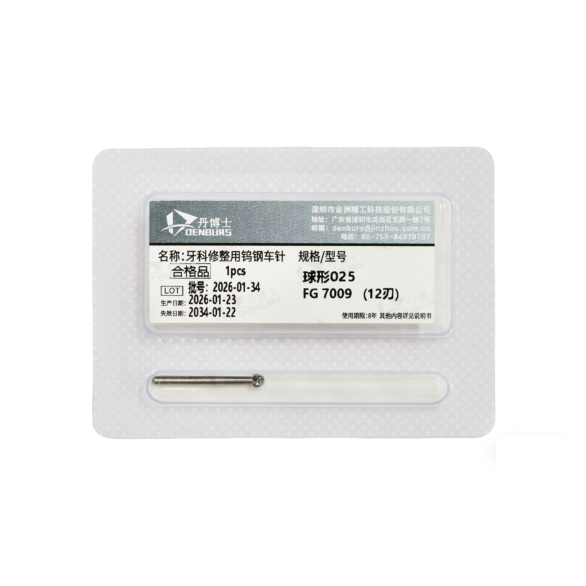 DENBURS/丹博士 牙科修整用钨钢车针 精修抛光钨钢车针 球形025 FG 7009 (12刃),1支/板